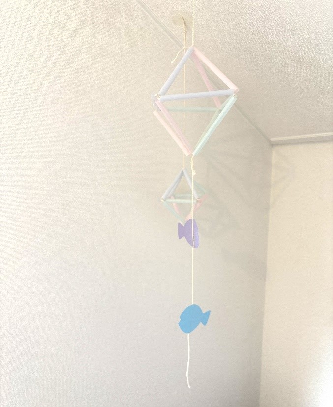 キッズスペースに来たお子様が、ヒンメリを見て楽しんだり、リラックスできるといいなと思っています。