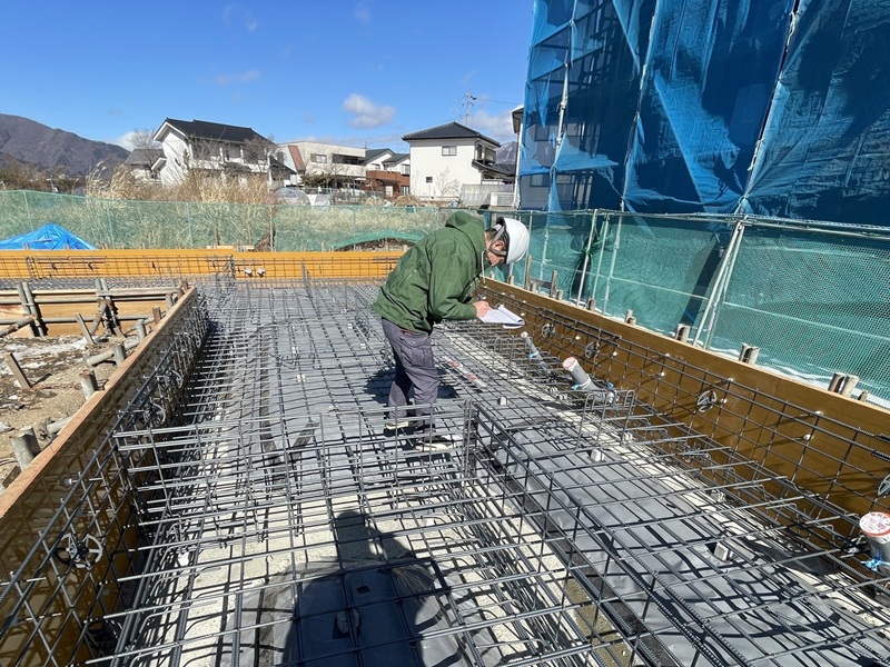 また、今週は上田市の現場で1回目の基礎底盤コンクリート打設前の鉄筋検査がありました。