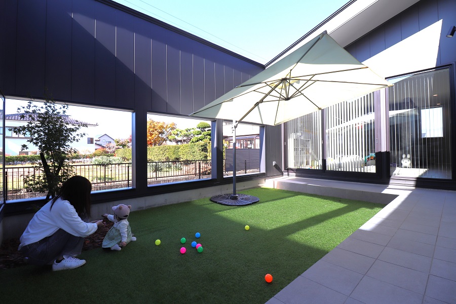 中庭スペースがあることでリビングに明るい光が差し込み、昼間は照明をつけずに過ごせます。