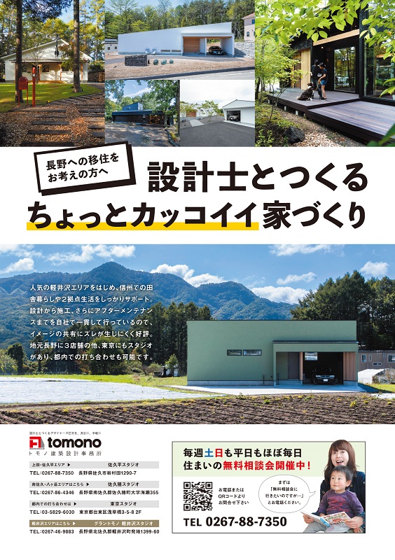 長野県 北信 東信地域・長野市・上田市・東御市・小諸市・佐久市・軽井沢町で設計士とつくる注文住宅 新築一戸建て デザイン住宅 リノベーションは住宅会社・工務店のトモノ建築設計事務所にご相談ください。