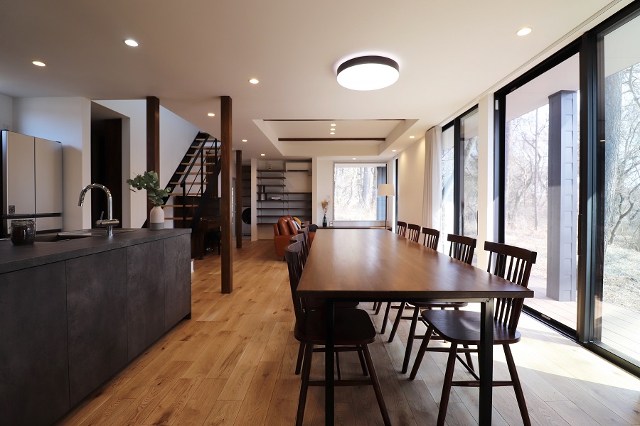 南東に広がる森と、西側の開けた景色を存分に楽しむためのお家が完成しました。