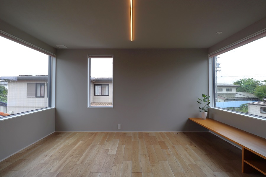 間口の狭い外観からは想像ができないほど、開放感のある2階リビングです。