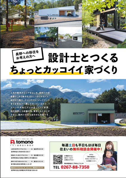 長野県 北信 東信地域・長野市・上田市・東御市・小諸市・佐久市・軽井沢町で設計士とつくる注文住宅 新築一戸建て デザイン住宅 リノベーションは住宅会社・工務店のトモノ建築設計事務所にご相談ください。