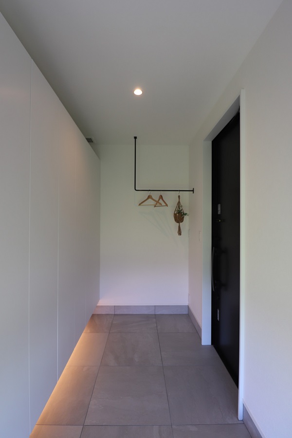 柔らかな間接照明が足元を照らす、静かな品を感じるエントランス。