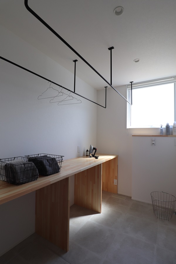 「洗う→干す→たたむ」といった一連の洗濯作業がこの空間内で完結し、毎日の家事負担を大幅に軽減する理想のサニタリー空間を実現しました。