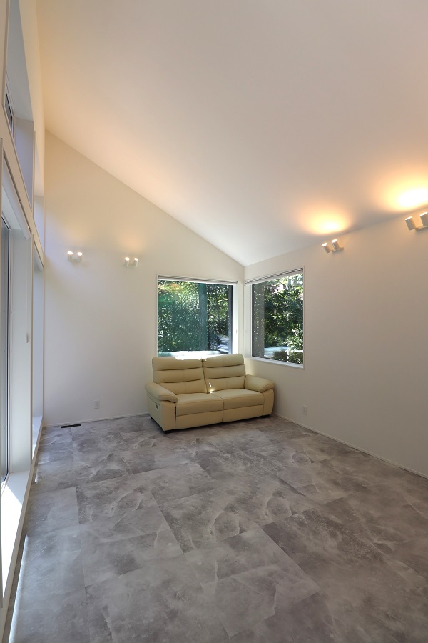 中廊下式の特徴でもある“暗い廊下”を改善するため、二つに分けた屋根のズレを使って、ハイサイドライト(高窓)を設けました。