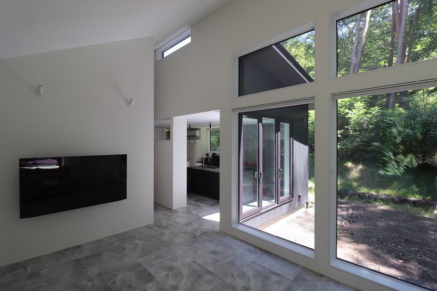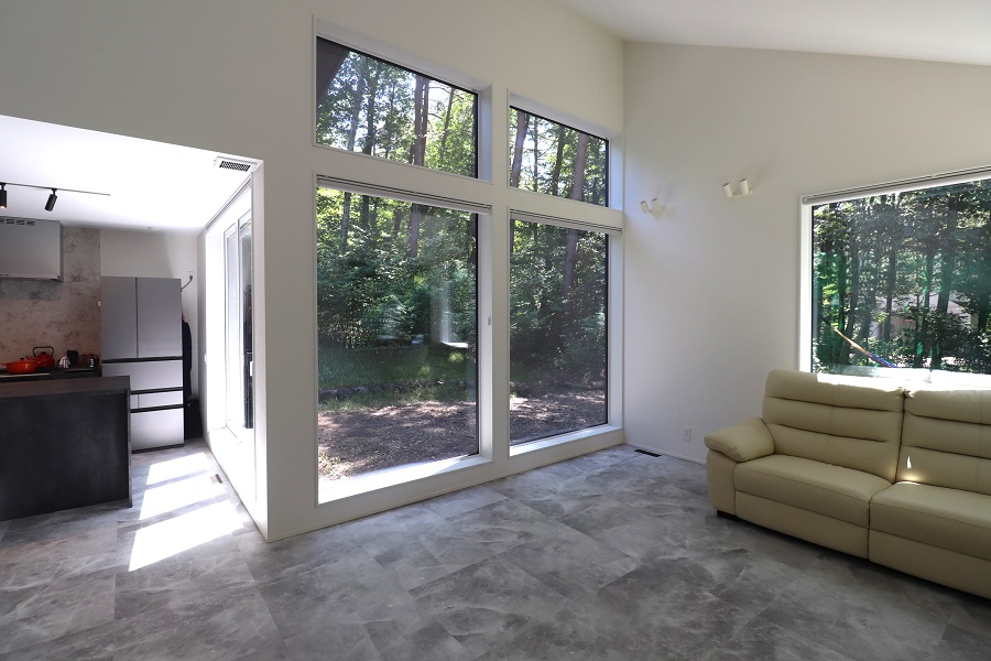 ハイサイドライトからは光だけでなく、玄関を入った時には高木の樹葉が見え、この場所の特徴を捕まえた住まいとなっています。