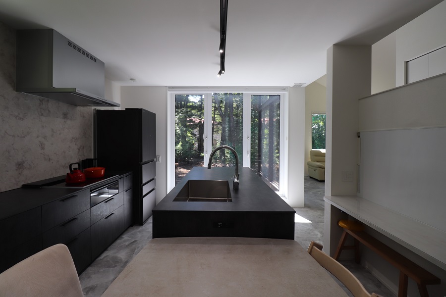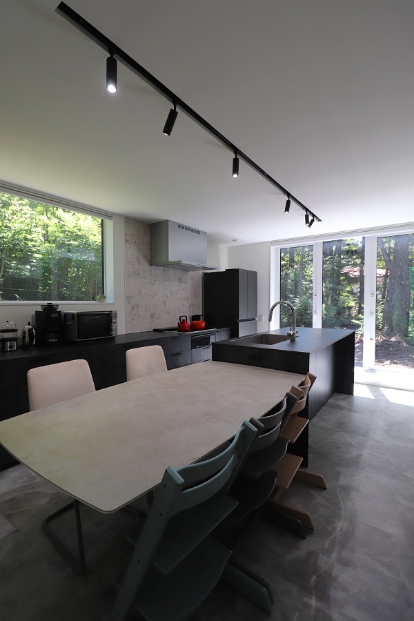リビングダイニングは斜めに配置し、緩やかに繋がりながらも各スペースがそれぞれ特徴を持った場となっています。