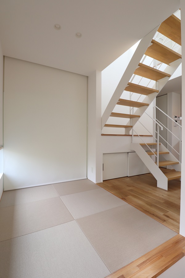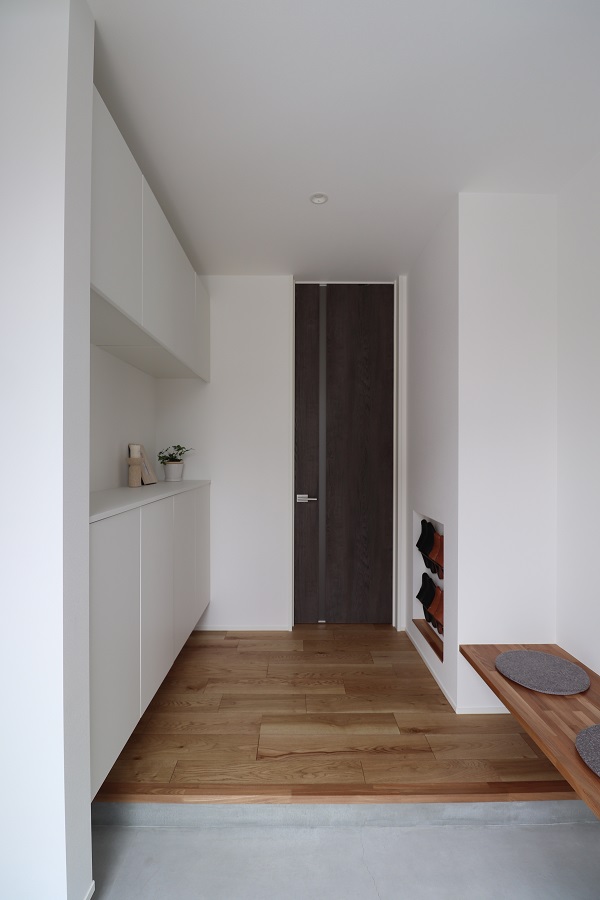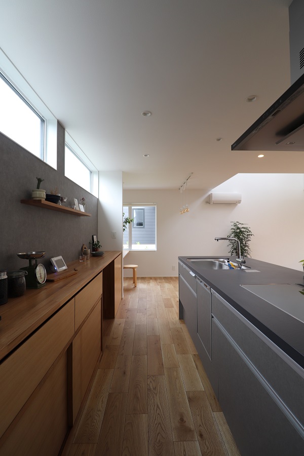 「縦の空間に豊かさのあるプラン」により、視線の高さや居場所の選択肢を多様にし、素材や空間のつながりを丁寧に紡いだ住まいです。